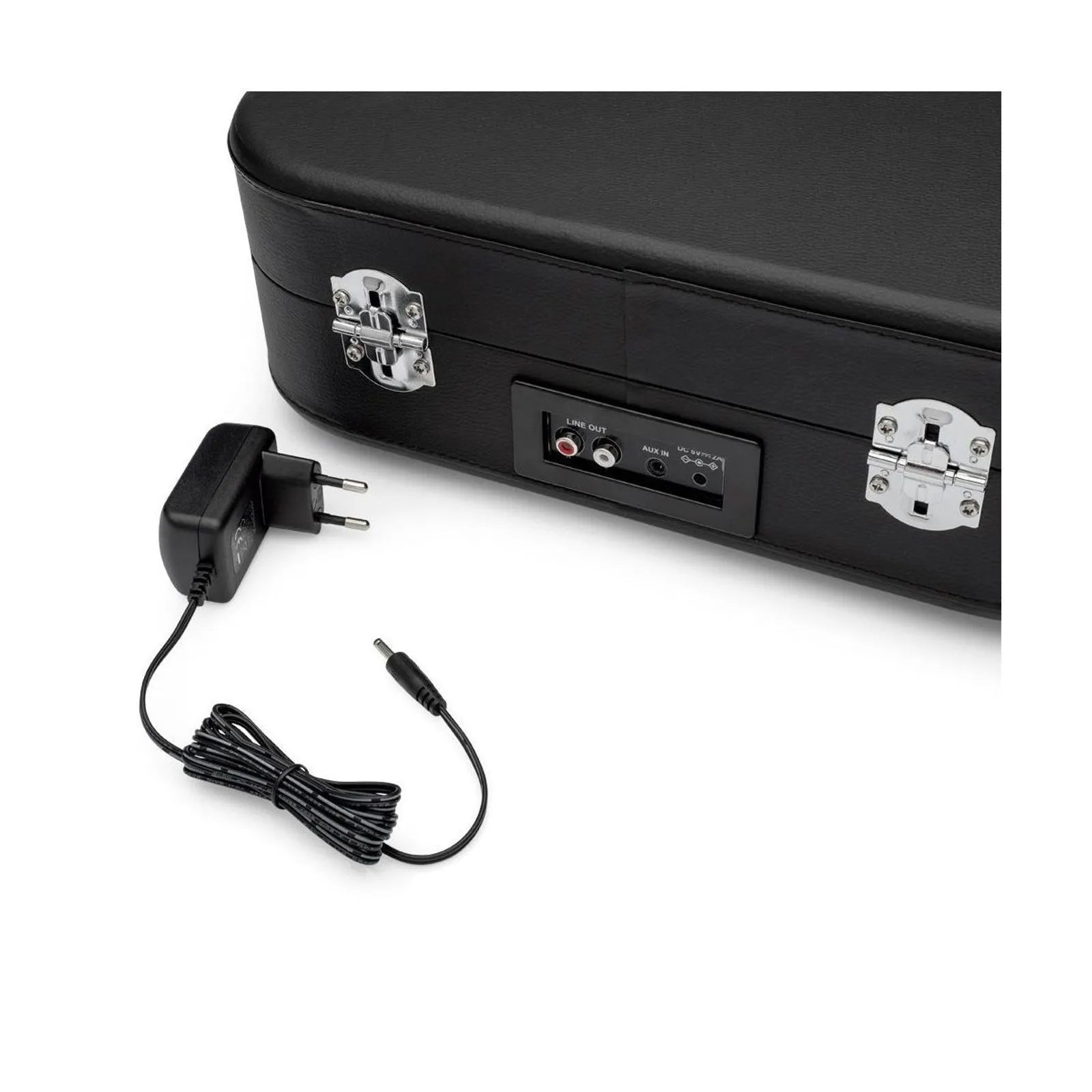 Contains 1 Bluetooth turntable, 1 sheet of stickers, 1 AC/DC adapter, 2 turntable needles and 1 instruction manual.